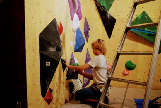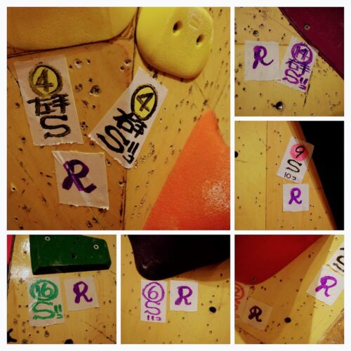 マット上に散らばったホールドの片づけや 課題テープ作りにと 私も作業に入ります!