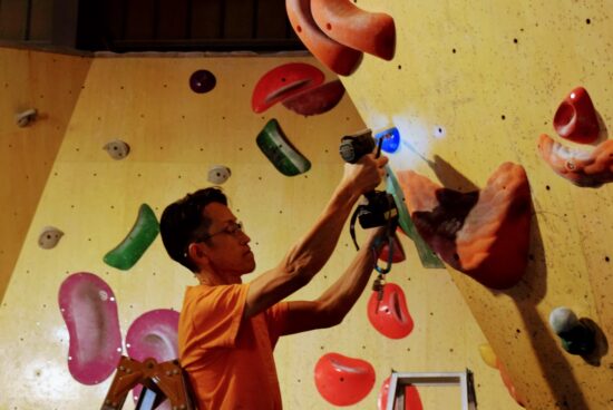 壁に向かい熱中夢中のセット作業💪